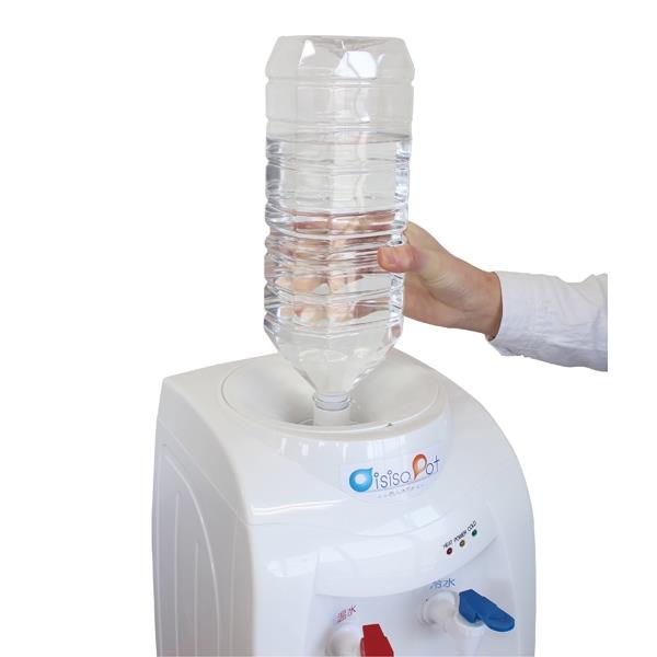 世間一般の水のセット販売とは違い、市販のペットボトル(2L)を装着できるので、普段から飲み慣れた水をお飲み頂けます。
