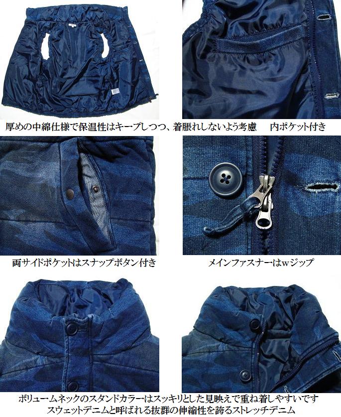 迷彩 中綿ベスト カモフラ デニム メンズ カットデニム スウェットデニム スエット ストレッチ アウター 秋冬【返品送料無料】【あす楽】【即日出荷】ラッピング無料【送料無料】【返品送料無料】